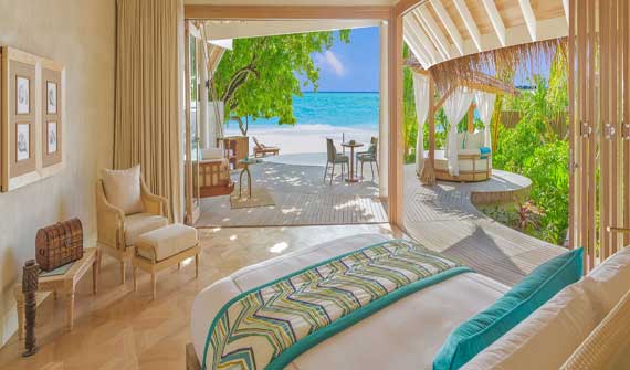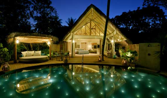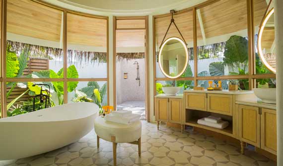 沙灘泳池別墅建在海灘上,隱藏在茂密的熱帶植被中,別墅擁有海景和開放式180度陽臺,主臥可欣賞海灘和海洋景觀,陽臺上有一個(gè)36平方米的私人游泳池,馬爾代夫風(fēng)格秋千、太陽椅、傘、餐桌椅、一個(gè)超大的沙發(fā)床、豪華空調(diào)浴室提供室內(nèi)淋浴,一個(gè)獨(dú)立的深浴缸以及一個(gè)室外露天花園淋浴。