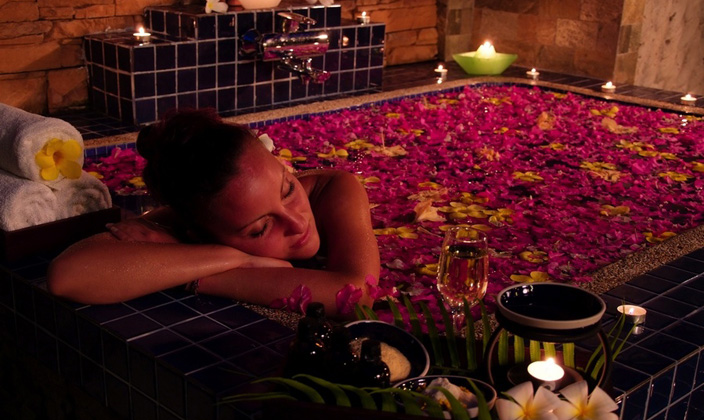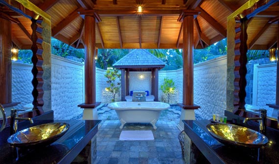 按摩浴缸水上別墅位于島邊緣的海上區域。房內設施與豪華水上別墅基本相同,區別在于寬敞的私人露臺上有個按摩浴缸。從露臺上可以看到海上的珊瑚礁。浴室面積約為普通房間浴室的兩倍。
