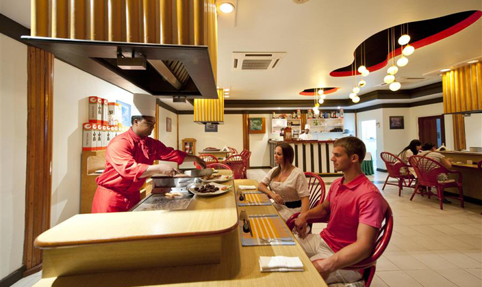 美食特色:日本美食。餐廳介紹:島上的日式餐廳,餐廳裝飾的有小橋、池塘、瀑布等,裝飾華麗的餐廳,展示了傳統正宗的日本美食,廚師可能會雜耍,訓練有素的廚師,從日本進口的日本料理食物。