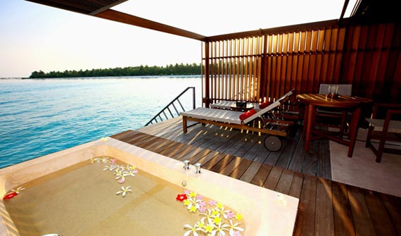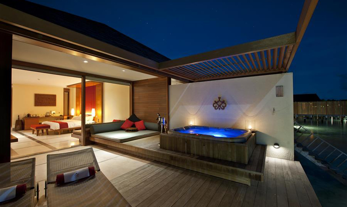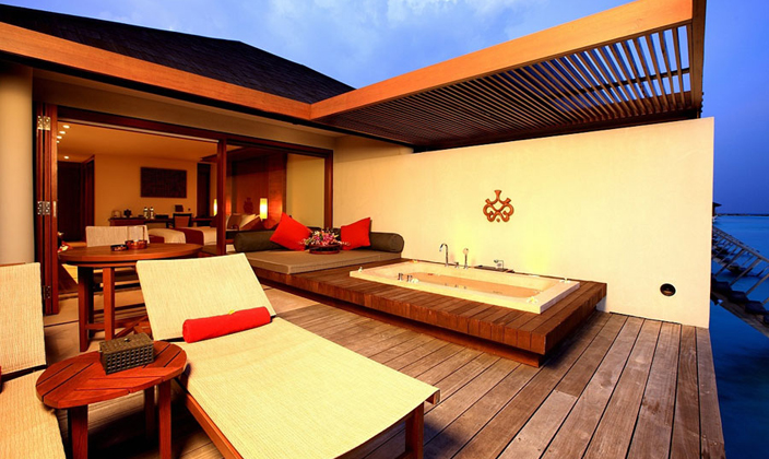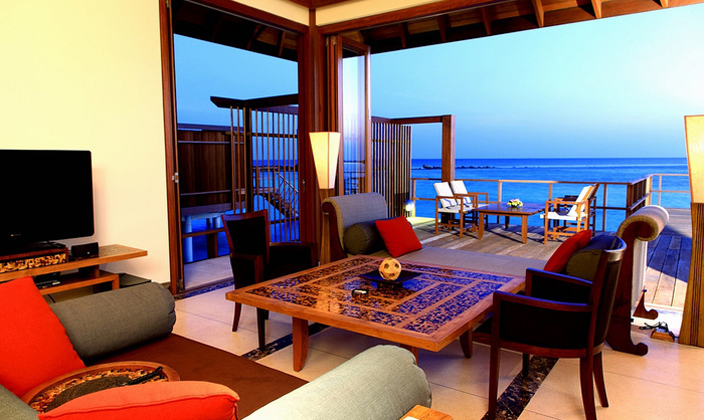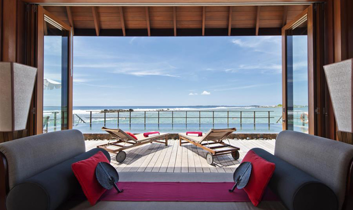 海上別墅套房位于礁湖邊上,提供了無可企及的享受。將最美麗的海景攬入眼中,寶石藍色的礁湖和大海就在您的窗外。您還可以盡情享受您的私人泳池。
