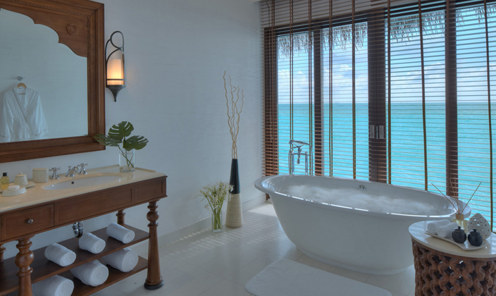 舉目便是引人入勝的寧靜海洋,溫柔的海浪拍打在別墅門口。入住單臥房水上別墅的住客亦可直接從別墅的甲板滑入專屬于自己的私人跳水區(qū)擁抱這片清澈湛藍(lán)的海水。