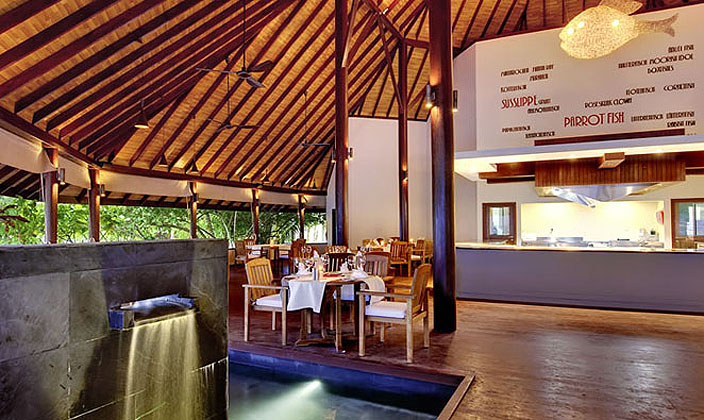 美食特色:亞洲、馬爾代夫菜式。餐廳介紹:有8張餐桌被設計為魯濱遜風格,并且客人還能夠選擇到一處靜怡之地獨立用餐,在享用美食的同時,感受周圍的浪漫氛圍。