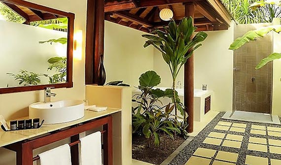 花園別墅GardenVilla,每間別墅都有私人寬敞露臺,可以讓客人在享受日光浴的同時,一覽島上的熱帶風光。除此之外每間別墅內還特別設置了一個室外花園雨水淋浴,可以讓客人一邊欣賞美景一邊沐浴。