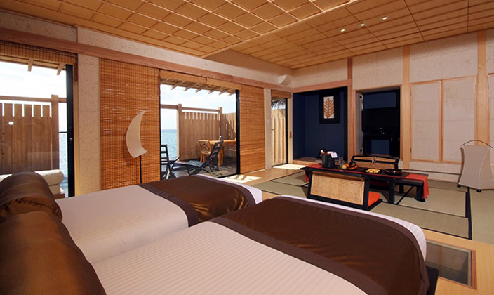 水上日式別墅以傳統日本建筑為設計理念,以追求奢華、隱秘住所的賓客需求為標準精心構建而成。室內裝潢的色調能夠舒緩情緒,美觀宜...查看更多