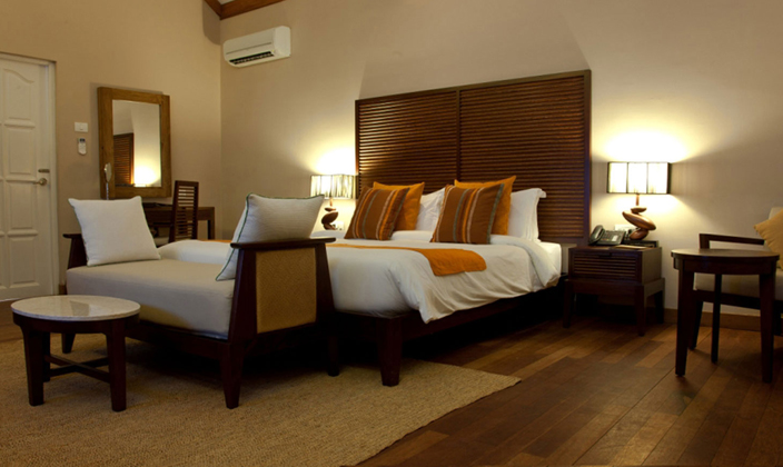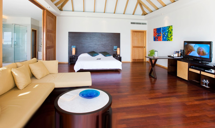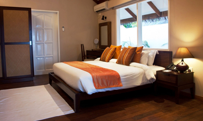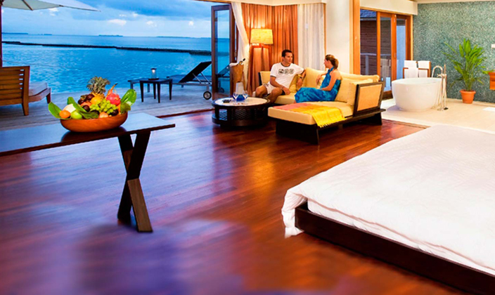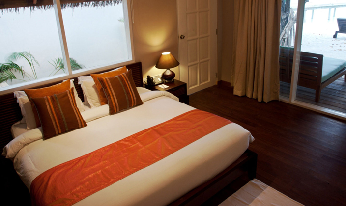 馬代原滋原味的五星島嶼,島嶼景色唯美,內飛或水上飛機都可以上島,沙水屋的房間設計為樸素的馬代風格,房間面積較大。