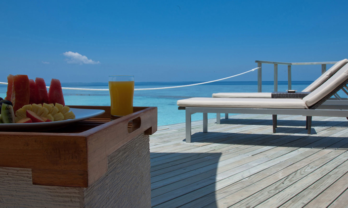水上別墅是豪華性和獨立性的一個縮影,位于寧靜的蔚藍海洋之上,別墅有著足夠寬敞的空間,每套別墅都有一個大臥室和一個獨立的步入式衣柜和獨立浴室。還配備了可伸縮的窗口,便于在房內欣賞風景。在甲板上能欣賞到馬爾代夫海洋迷人景色。在蕉葉島,這些小細節為客人提供一個完美的獨家體驗,并給旅客留下難以磨滅的記憶。