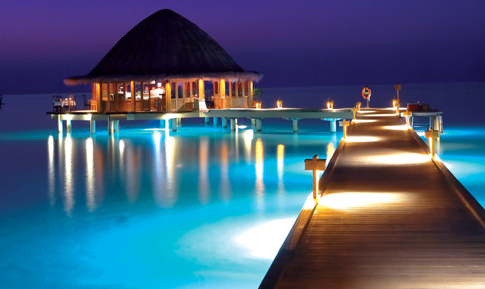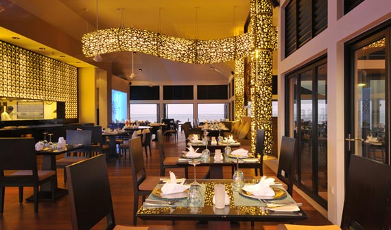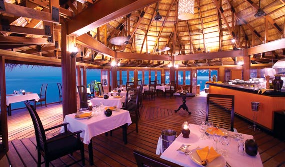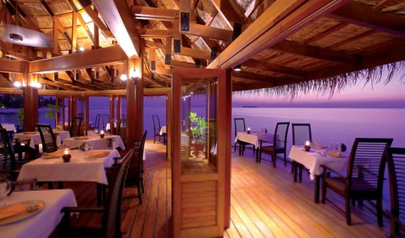 美食特色:新鮮海產(chǎn)和國際風(fēng)味美食。餐廳介紹:置身于帶茅草屋頂?shù)乃闲∥菹碛民R爾代夫精致美食。 開放式的餐廳無論室內(nèi)還是戶外都有燦爛的燈光照明,營造獨家用餐風(fēng)情。