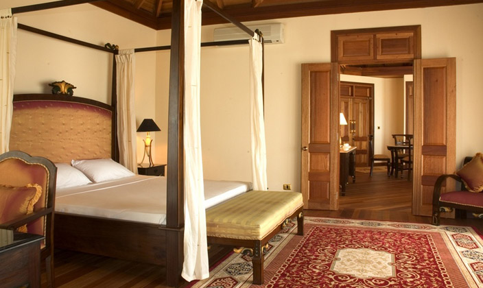 總統(tǒng)水上屋位于水上的2座木橋連接處的頂端,提供完全的私密休閑,水天連線,仿佛造訪了天堂的國(guó)度。屋內(nèi)設(shè)計(jì)結(jié)合歐式風(fēng)與傳統(tǒng)馬爾地夫的裝飾,古典的雅致中帶上了自然南亞風(fēng)格,是奢華也是崇尚自然。 您可請(qǐng)專人為全家人準(zhǔn)備餐食。