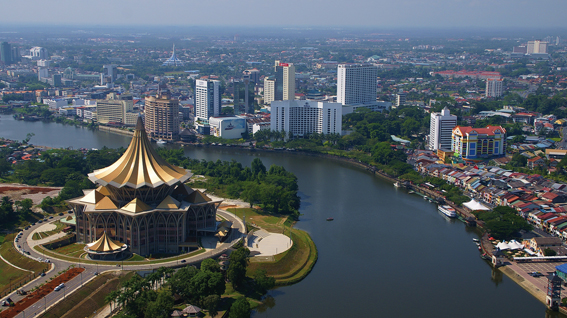 古晉( Kuching) 馬來(lái)語(yǔ),意為“貓”,是東馬歷史最久、最大的城市、工商業(yè)中心與港口。古晉地處