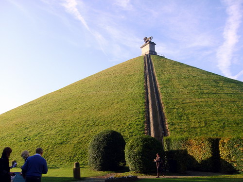 在距滑鐵盧城鎮以南2.5公里的地方就是著名的滑鐵盧古戰場,雖然它現在是比利時最重要的旅游景區,但并未隨意開發。現在的古戰場除了有幾座規模很小的紀念館之外,沒有興建任何民用或公用設施,與180多年前幾乎沒什么兩樣。所不同的只是在位于古戰場偏南的地方多了一座金字塔式的小土山。這座小山既是古戰場的標志,也是觀景臺,站在山頂的平臺上可以縱覽滑鐵盧戰場的全局。
