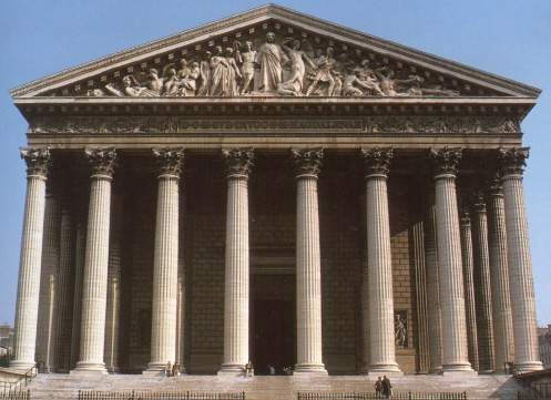 巴黎市中心8條主要大道交匯處。寬闊的臺階、高大的科林斯式柱廊、山形屋頂令教堂外觀如同