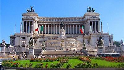 維克多·埃曼紐爾二世紀念堂:坐南朝北俯視著廣場,是威尼斯廣場上最醒目的建筑,即使在羅馬這樣充滿宏偉建筑的城市,也算是相當巨大的工程了。因為造型和顏色的關系,紀念堂被戲稱為“結婚蛋糕”或“打字機”。這座白色