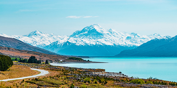 1. 途中經過【布卡基湖 (牛奶湖) 】是新西蘭最漂亮的冰河湖 ,湖水的顏色如同在湛藍的湖水中倒進了乳白色的牛奶 ,粉系夢幻 般色彩的 湖水襯托遠處的南阿爾卑斯雪山 ,讓你親臨于電影《魔戒》的神奇場景之中 !