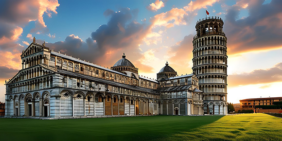14:00 游覽比薩斜塔(外觀游覽約20分鐘),比薩斜塔位于意大利托斯卡納省比薩城北面的奇跡廣場上,比薩斜塔是比薩城的標志,1987年它和相鄰的大教堂、洗禮堂、墓園一起因其對11世紀至14世紀意大利建筑藝術的巨大影響,而被聯合國教育科學文化組織評選為世界遺產。