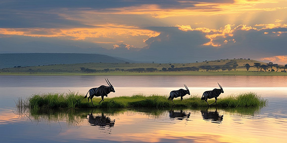 馬賽馬拉野生動物自然保護(hù)區(qū),即馬賽馬拉國家公園,是全肯尼亞最大、最受歡迎的國家公園,占地1800平方公里,與 坦桑尼亞的 塞倫蓋提國家公園隔河相望。每年的野生動物大遷徙就在這兩個(gè)公園之間進(jìn)行。因此,這里簡直成了野生動物的王國,很難同時(shí)看到的 非洲五獸:大象、獅子、豹子、犀牛和水牛經(jīng)常在這里出沒,而難以計(jì)數(shù)的羚羊、長頸鹿、河馬、狒狒和狼則日夜在草原上徘徊。這里是動物最集中的棲息地和最多色彩的荒原。在這里可充分感受人與自然、人與動物和諧相處,獨(dú)特的原始文化,草原日出、日落及仙境般的美妙,可以使久居都市的現(xiàn)代人忘記一切壓力與煩惱,完全融入到奇妙的大自然中,感受到一種回歸的輕松與快樂