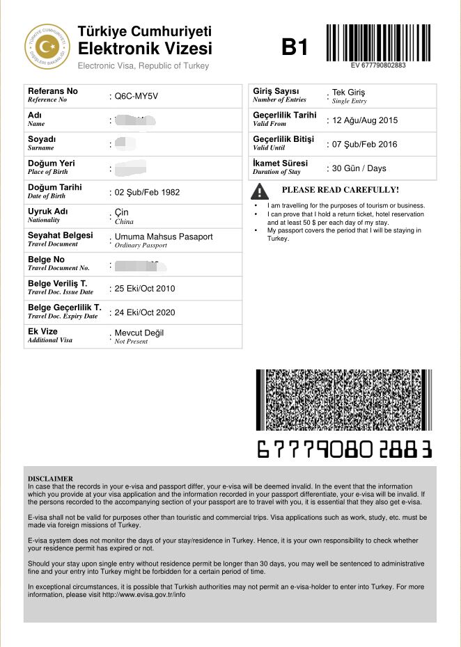 土耳其旅游簽證【電子簽證】旅游簽證編號:29537