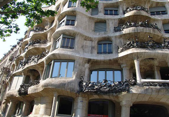 米拉之家:又是安東尼奧高迪的作品,在1900的時代,富豪米拉先生因欣賞高迪設計的巴特由之家,所以特意聘請他為自己設計了這個米拉之家,米拉之家也因此而得名。米拉之家延續了高迪的風格——拋棄直線,屋頂成拋物線形狀,占地13000多平方米,確確實實的一個富人豪宅。