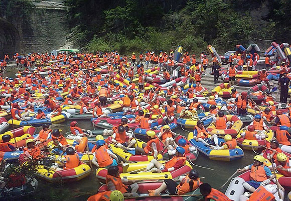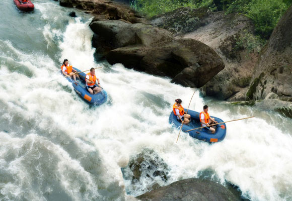 一宿酣眠在水聲月色里,是晨鳥的鳴唱喚醒了我們,草草收拾了一下,就踱出山莊,沿著山路走向渡口。山路寂寂,晨霧如練,花香滿衣,路旁是修竹萬桿,腳下是落葉滿徑。偶有小路穿林,伸向不知名的去處。渡口不大,旁邊的高塔上,欄桿銹跡斑斑;碼頭上隨意橫著幾條小舟,看那纜繩,也是許久未解了。倒是船家的小狗,此刻汪汪的大叫起來,興奮的搖著尾巴,圍著我們繞來繞去,怕這生靈也耐不住寂寞了吧。