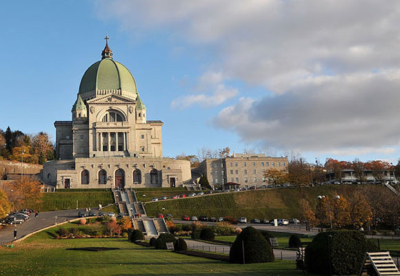 看來我來蒙特利爾旅游很是恰當呀。這是一座浪漫甚至奢華的城市,皇家山頂是一覽蒙特利爾全城的最佳去處,圣勞倫斯河緩緩的流淌,哥特式的尖頂在陽光的照耀下熠熠生輝。那種略帶陳舊的感覺,不由讓人生出一種親切感。這里最明顯的文化特色主要體現在這里的教堂上。圣約瑟夫大禮拜堂都是按照