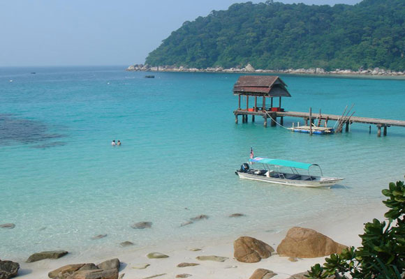 翻開世界地圖冊,可能你根本無法一下子找到“停泊島”,它實在是小得可憐。但是每一個馬來西亞人,都知道,“停泊島”是他們的旅游圣地。停泊島,是馬來西亞的一個島嶼,它就在丁加奴海岸旁,只有相距二十一公里的距離。它由兩座島嶼組成,面積大一些的那座叫“大停泊島”,面積略小的就叫“小停泊島”。這兩座島嶼上,覆蓋著的,是那濃密的原始森林。那海岸邊一排排密密的棕櫚樹,在海風的吹拂下,迎風搖曳,甚是美麗;那綿長的海灘,海沙潔白如玉,讓游人們玩耍嬉戲,不忍離開;還有那湛藍的大海,如果在里面洗上一個海水澡,是極其愜意之事。