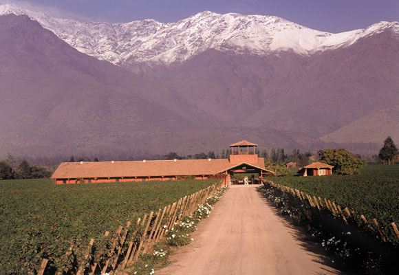 智利中南部是重要的葡萄酒產(chǎn)區(qū)。路兩邊漸入眼簾的是大片大片的葡萄莊園。安第斯山流下的晶瑩雪水,澆灌著中南部的谷地,加上豐富充沛的