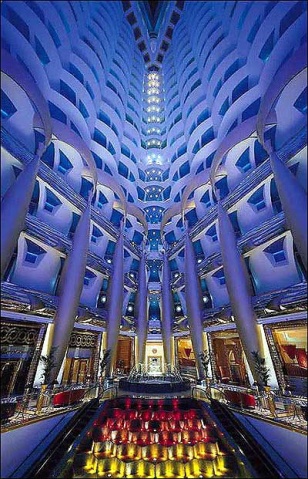 酒店擁有202間豪華的雙套房,餐廳位于最頂層,極其華麗。200米高的可以俯瞰迪拜全城的餐廳以及世界上最高的中庭,除了是一座酒店,更是來此旅游的人定要參觀的景點。它正對著Jumeirah Beach酒店(曾被認為是世界上最棒的酒店)。