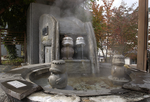 定山溪的象征物是“河童”,河童是日本老百姓想像中的水陸兩棲動(dòng)物,它頭頂凹陷,腳趾和手指上長(zhǎng)著蹼,尖尖的嘴,是一只形狀十分滑稽的妖怪。舊時(shí)傳說有一位青年被拖入河童國中,過上了幸福的生活,所以河童便成了當(dāng)?shù)氐氖刈o(hù)神。溫泉街上,豎立著河童大王等 20 具以上各種姿勢(shì)的河童塑像。還有一個(gè)河童水潭,8 月上旬舉行的河童節(jié)十分熱鬧。