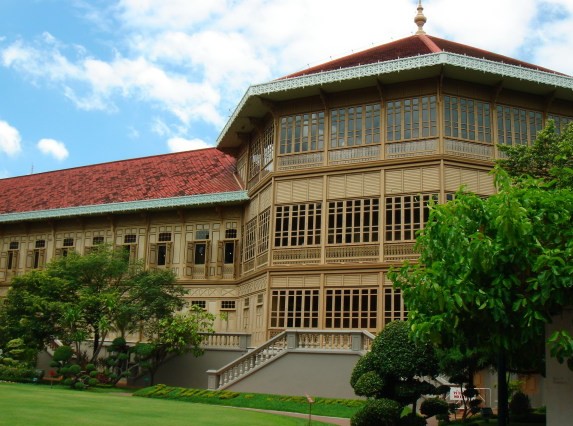 泰王五世行宮即威曼美庫宮殿,為拉瑪五世日常生活的宮殿。1900年建成,1910年遷至現(xiàn)在的地址。拉瑪五世逝世后,宮殿未再使用。1982年紀(jì)念曼谷建都200周年時,泰國王后下旨宮殿開始向公眾開放。宮殿為三層建筑,全部以柚木修建,融西洋式和泰國傳統(tǒng)風(fēng)格為一體,設(shè)計者是拉瑪四世的兒子——納里沙拉奴哇提翁親王。宮殿內(nèi)有展示世界各國餐具和生活用品的博物館,開放了31間展覽室,臥室、盥洗室等都保留當(dāng)年的原貌。