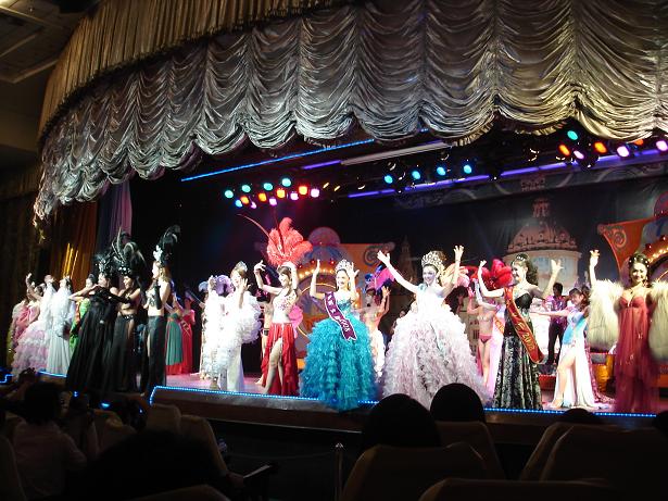 金東妮人妖秀(Golden Dome Cabaret Show)耗資千萬、獨一無二,是曼谷較有名的人妖秀場。主要展出具有東方文化的歌舞表演,游客大部分來此亞洲。在大門入口右手墻上,就可看到2005年泰國人妖大賽,此秀場拔得頭籌,榮獲前茅,來臺灣巡回表演的也是此間秀場。表演可看性非常高,節(jié)目結(jié)束后您還可支付一些小費與佳麗們合影留念。