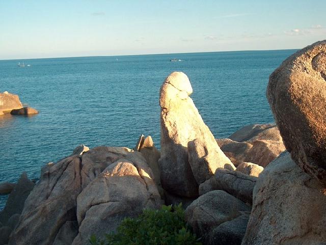 祖父祖母石是由兩塊奇異的的巖石組成,它們的形狀類似于男女的生殖器官,讓人不禁感慨大自然的鬼斧神工,因此被泰國人稱為祖父祖母石。祖父石直直矗立在巖石上,祖母石則遠在百多米之外,隱沒在波濤洶涌的大海中,只有在退潮時方可清楚的看見。