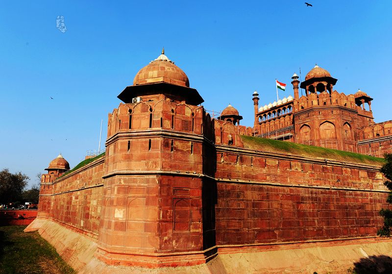 紅堡是一座紅色砂巖筑就的城堡,17世紀中葉,由莫臥兒王朝第五代君主沙賈漢修建。紅堡長915米,寬518米,主門名為拉赫爾門。由于幾經戰亂,今日的紅堡盡管失去了昔日的華麗,但拉合爾門的雄偉氣勢還在,巍巍的紅色城墻還有,部分基本結構完好的宮殿似乎還可以窺探出昔日的輝煌氣派。紅堡的拉赫爾門(LahoreGate)正對著的路就是老德里著名的商業街舊市街(ChandniChowk)。