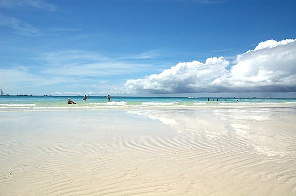 白沙灘是長灘島得以聞名世界的最大原因。它位于島的西岸中段,從南到北延伸,長達4公里,是由大片珊瑚磨碎后形成的,沙灘平緩舒展,沙質潔白細膩,即使在驕陽似火的正午時分,踏在沙上也依然清涼。到了晚上,白沙灘就搖身一變成為4公里長的巨大酒吧,燈光和音樂將它妝點得搖曳多姿。不少前來度假的人不進行任何觀光或游樂,只是從早到晚流連于白沙灘。